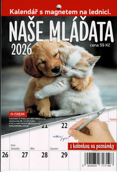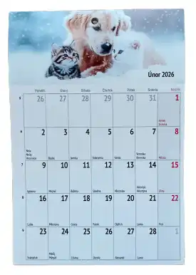 Potěšení pro všechny milovníky psů a kočiček! Tento veselý kalendář na rok 2026 přináší každý měsíc nové fotky roztomilých, věrných a hravých společníků, kteří vám zpříjemní den a rozjasní každou stěnu. Ideální doplněk do kanceláře i domova pro všechny, kdo mají rádi čtyřnohé přátele.