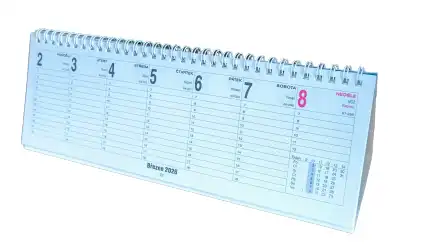 Stolní kalendář na rok 2026 bez obrázků. Vhodný pro zapisování důležitých poznámek, k organizování různých událostí každodenního života.